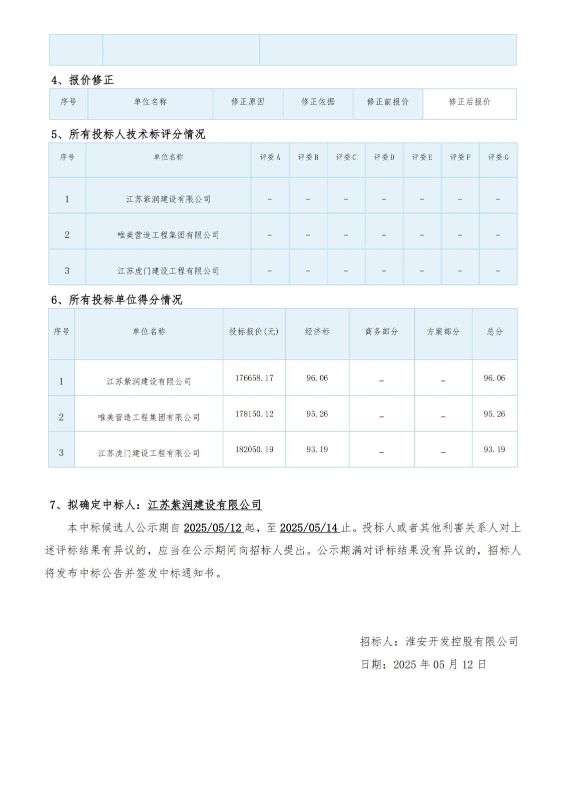 淮安开发控股有限公司东城江南和园1区1号会所消防改造工程 评标结果公示