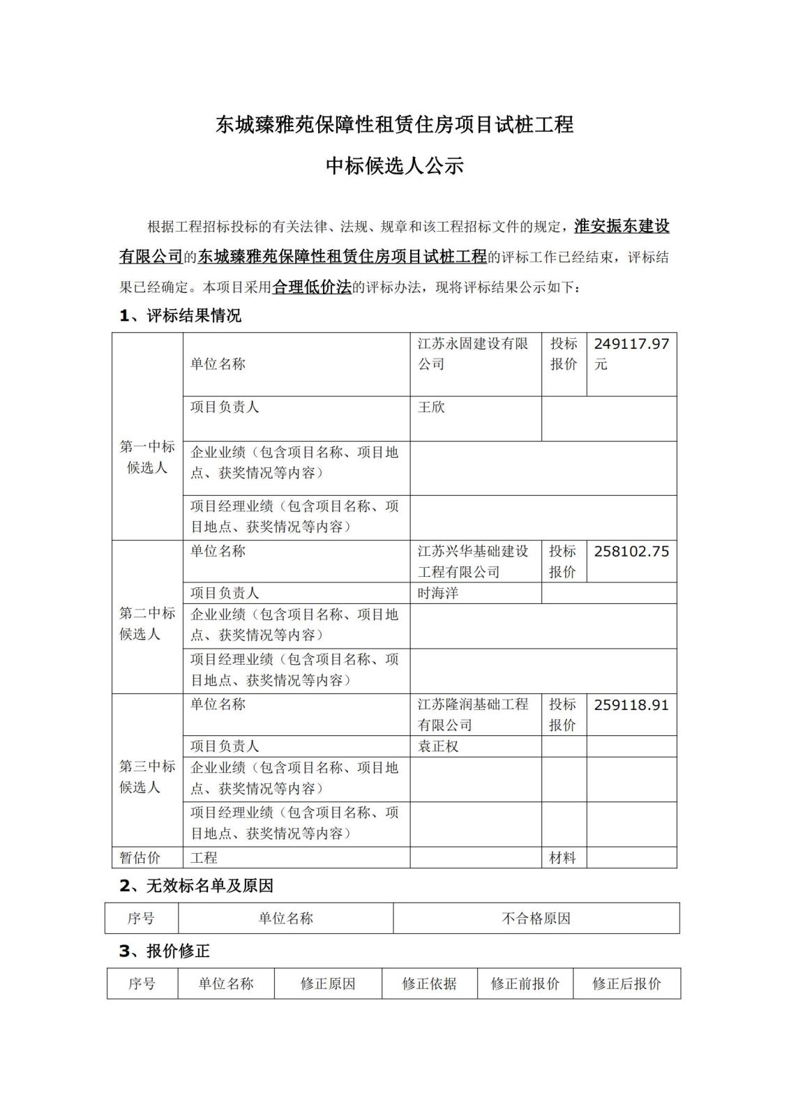 东城臻雅苑保障性租赁住房项目试桩工程中标候选人公示
