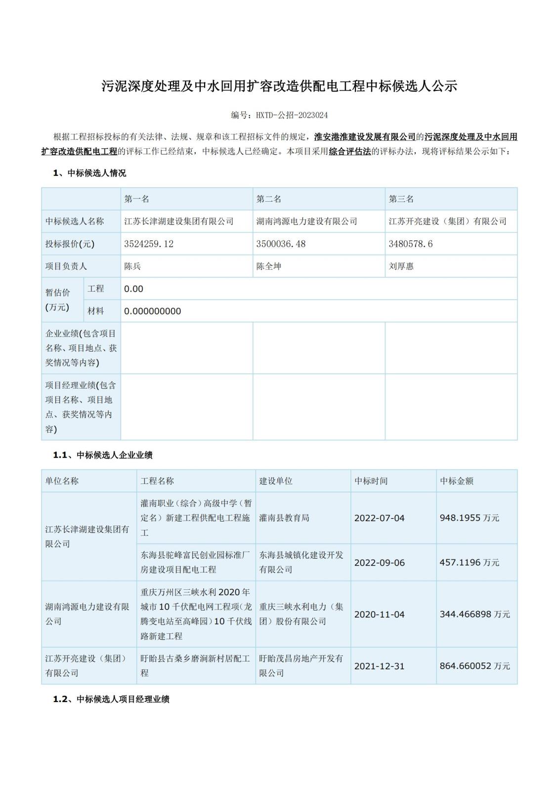 污泥深度处理及中水回用扩容改造供配电工程中标候选人公示